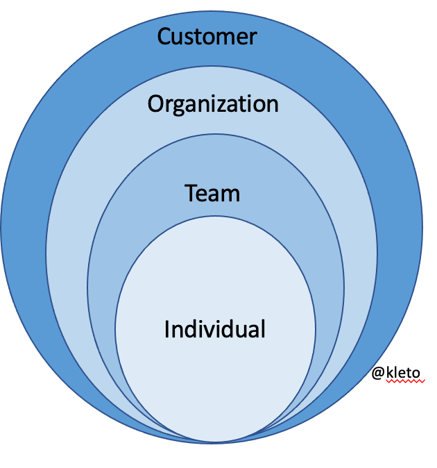 My early attempts at a Product Leadership framework from 2018, showing relationship between individual and customer. It all starts with the inividual.
