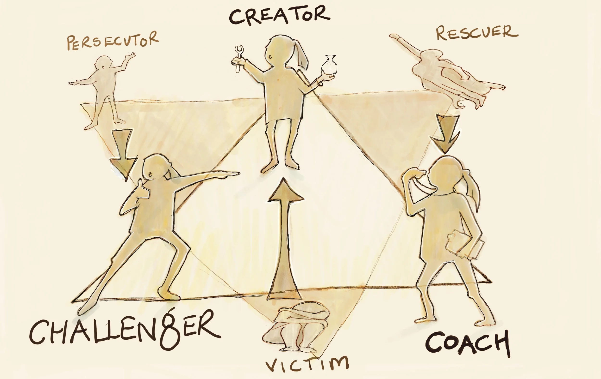 And the persecutor is replaced with a challenger—someone who is assertive but constructive about getting their needs met by calling forth growth in others.